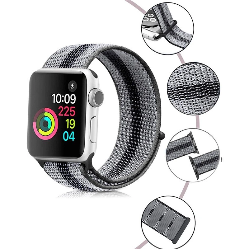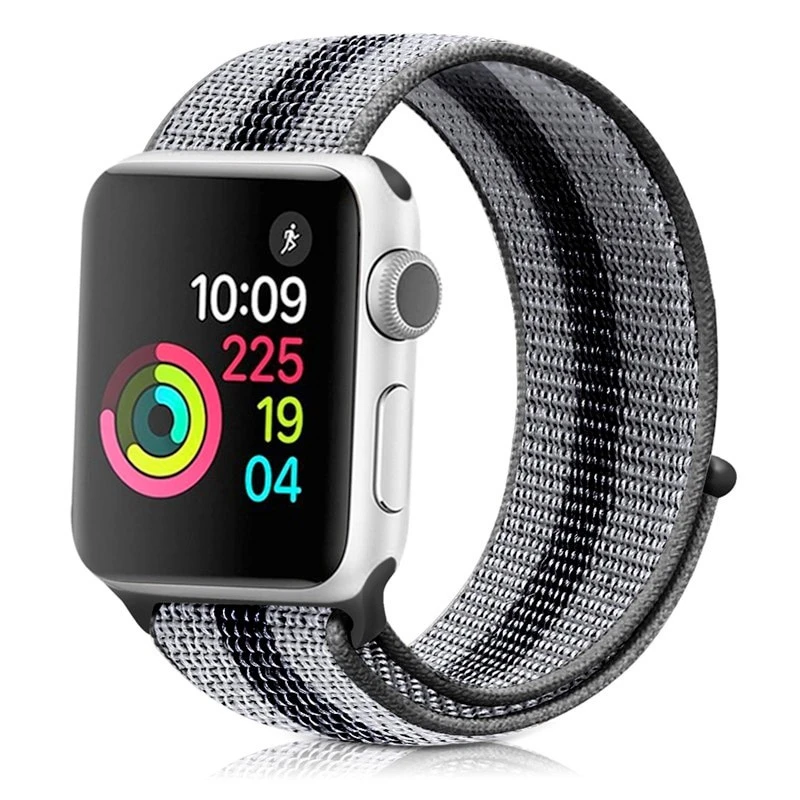 Personnalisez votre Apple Watch en optant pour ce bracelet au design sport. Fait en nylon tissé en couleurs dégradés, il est léger et met en valeur votre poignet. Pratique, son fermoir à scratch vous permet de l’ajuster à votre taille.