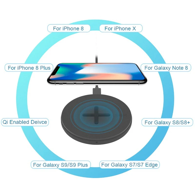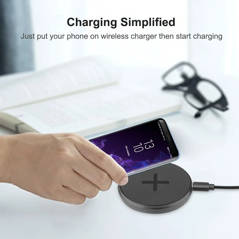 La surface antidérapante offre une plateforme de recharge sans fil Qi stable et sûr pour votre smartphone. Posez simplement votre smartphone iPhone et Android compatible recharge sans fil sur la base pour une expérience sans tracas. Vous pouvez même charger votre smartphone sans avoir à retirer votre coque, à l’exception des coques en métal/magnétiques pouvant entraîner des interférences électromagnétiques.