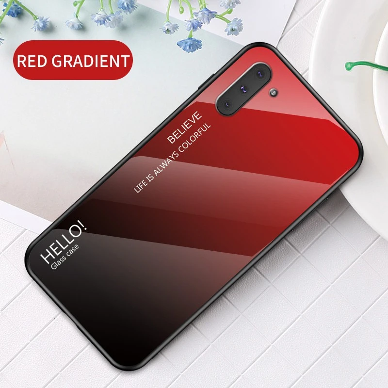 Spécialement conçue pour permettre la recharge sans fil sans avoir à retirer la coque du phone. La simplicité de la Coque en verre trempé pour Galaxy Note 10. Coque avec motif imprimé : « HELLO – BELIEVE – LIFE IS ALWAYS COLORFUL » (traduction : Bonjour, Croyez – la vie est toujours coloré »)