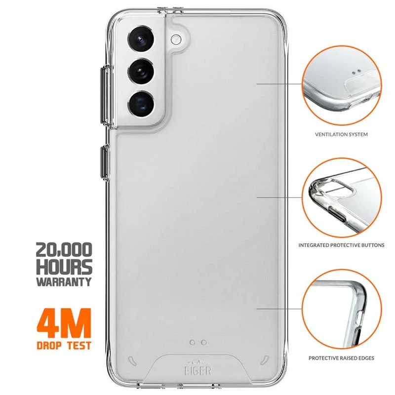La coque EIGER Glacier Alpine Ice design pour une protection discrète et claire. La technologie Glacier Tec+ empêche la coque de jaunir plus longtemps et protège votre appareil des rayures. Associé à une technologie de boutons indépendants au design noir, cette coque donne du style à votre smartphone Samsung Galaxy S22 Plus 5G tout en lui offrant une protection robuste et efficace.