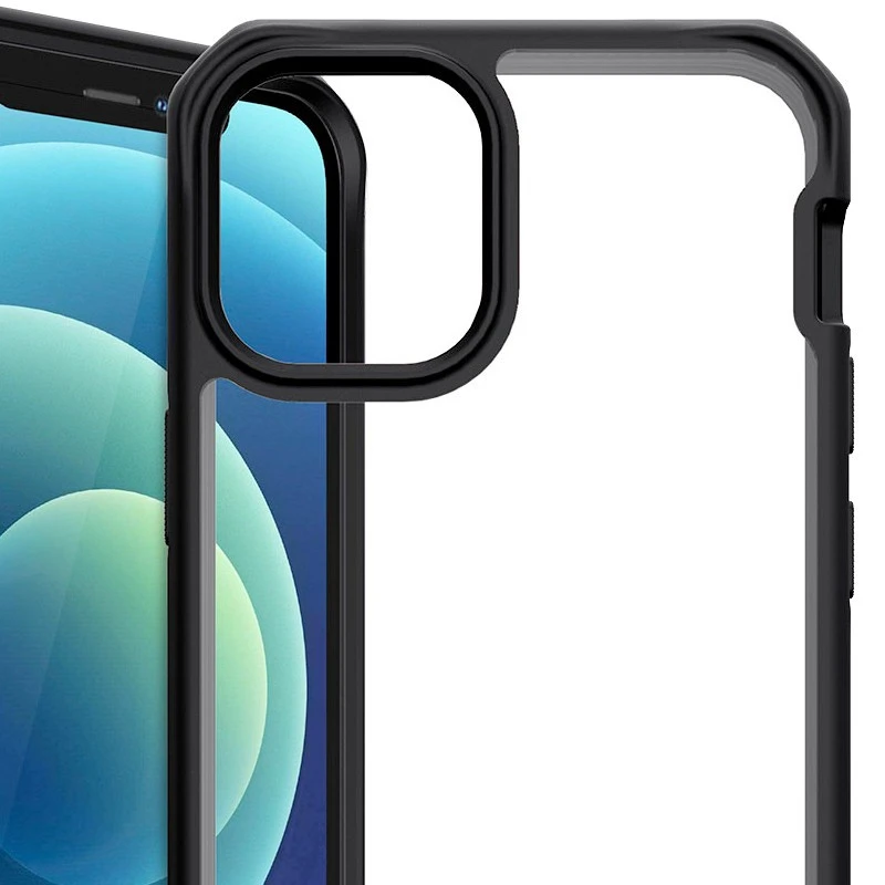 Cadre coloré, robuste et givré avec technologie de coussin d’air dorsal rigide et transparent, bumper de protection en polycarbonate, testé et certifié contre les chutes de 2 m.